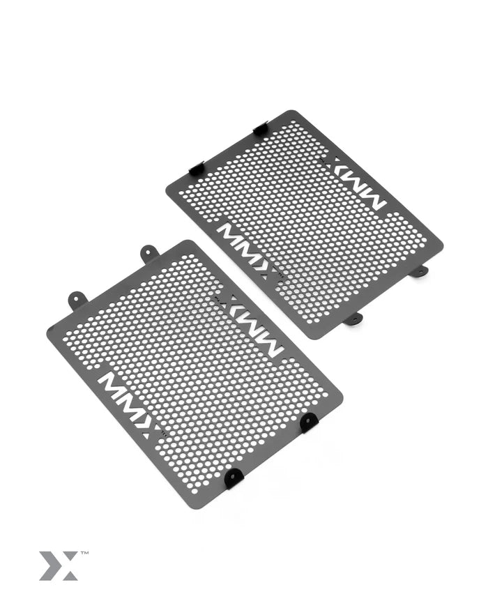 Manufactured from strong yet lightweight aluminium, with a hexagonal grid design laser-cut into them for a clean, high-quality finish. They’re then powder-coated in a durable MMX black coating to handle whatever the road throws at them.