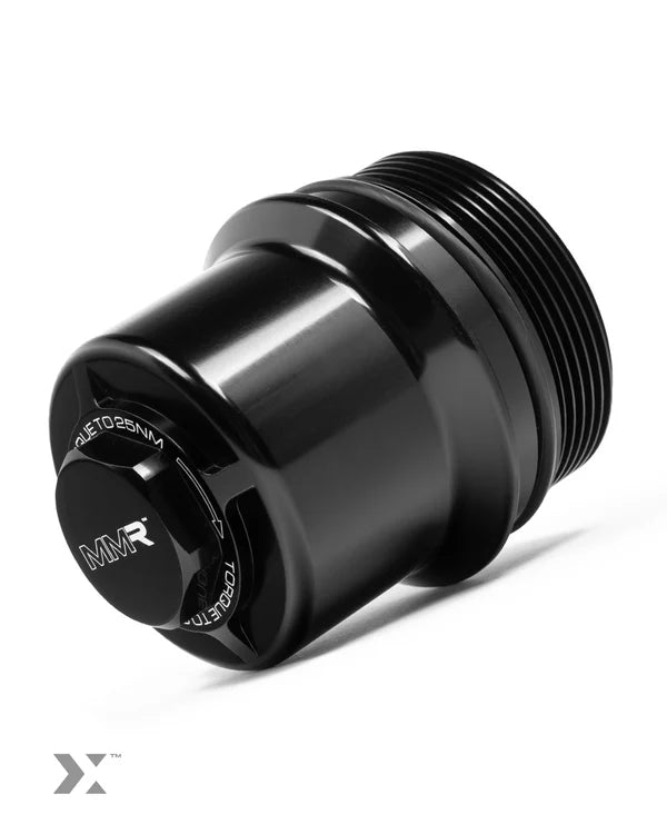 As the perfect complement to your new filter, the billet oil filter housing is a direct replacement housing that replaces the cheap plastic oil filter housing which is fragile and often cracks, leading to oil leaks. Of course, the gloss-black, solid billet of 6061 aerospace-grade aluminium is a thing of beauty in the engine bay. But, it's certainly not just about the looks. An integrated pressure control oil bypass is built into the MMR housing, meaning that there is no need to transfer OE plastic bypass valve from OE filter housing to MMR filter housing.