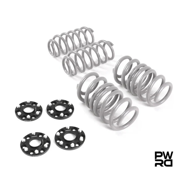 This carefully developed upgrade brings together two of our most popular components - PWRD Dynamic Lowering Springs and PWRD Wheel Spacers - engineered to work seamlessly with all factory wheel sizes: 19", 20" or 21".